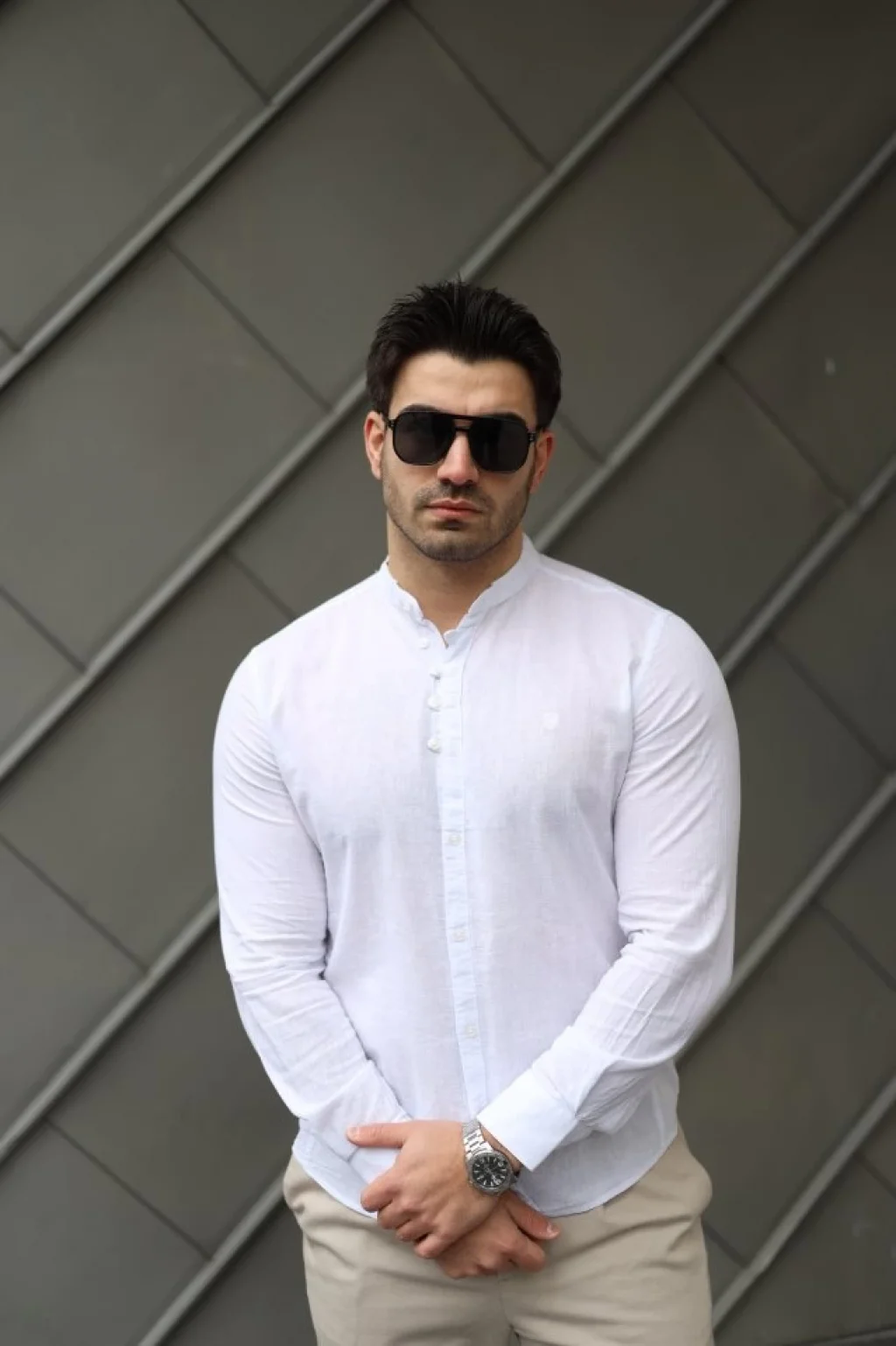 • Erkek Pamuklu Keten Kumaş Hakim Yaka Gömlek