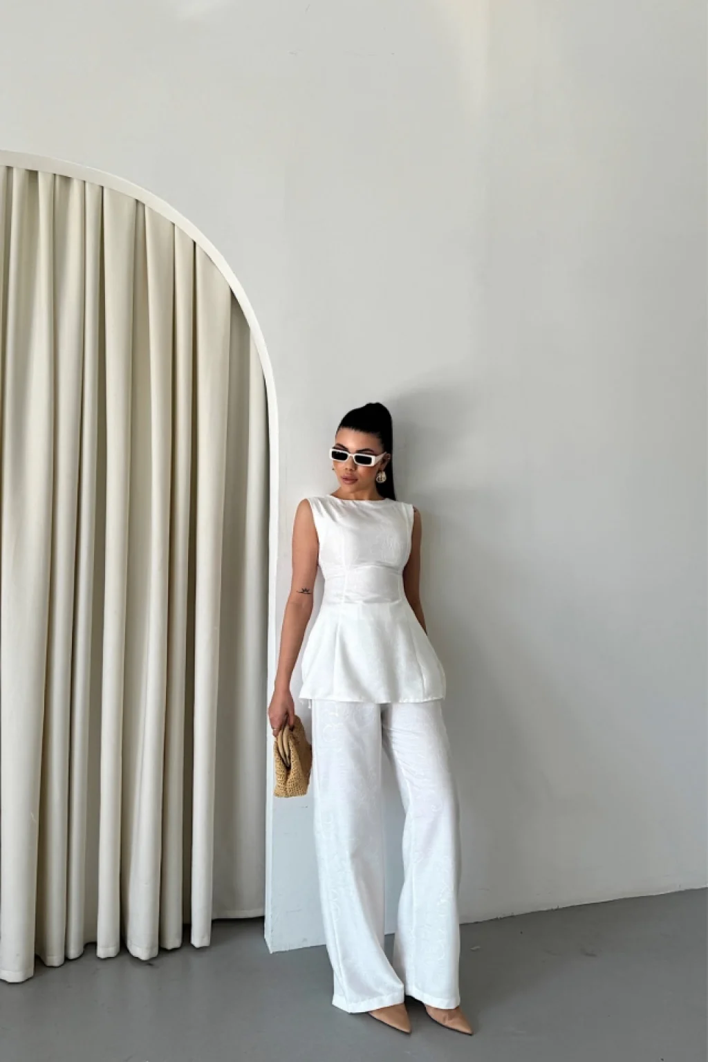 • JAKAR KETEN KOLSUZ BLUZ-PANTOLON TK - Beyaz