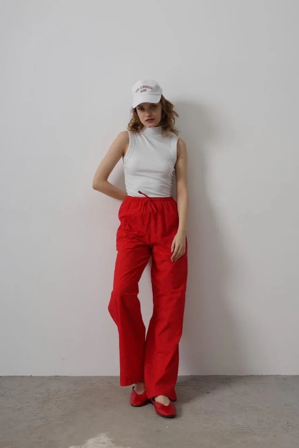 • Beli Bağlamalı Brode Pantolon - Kırmızı